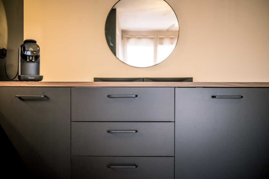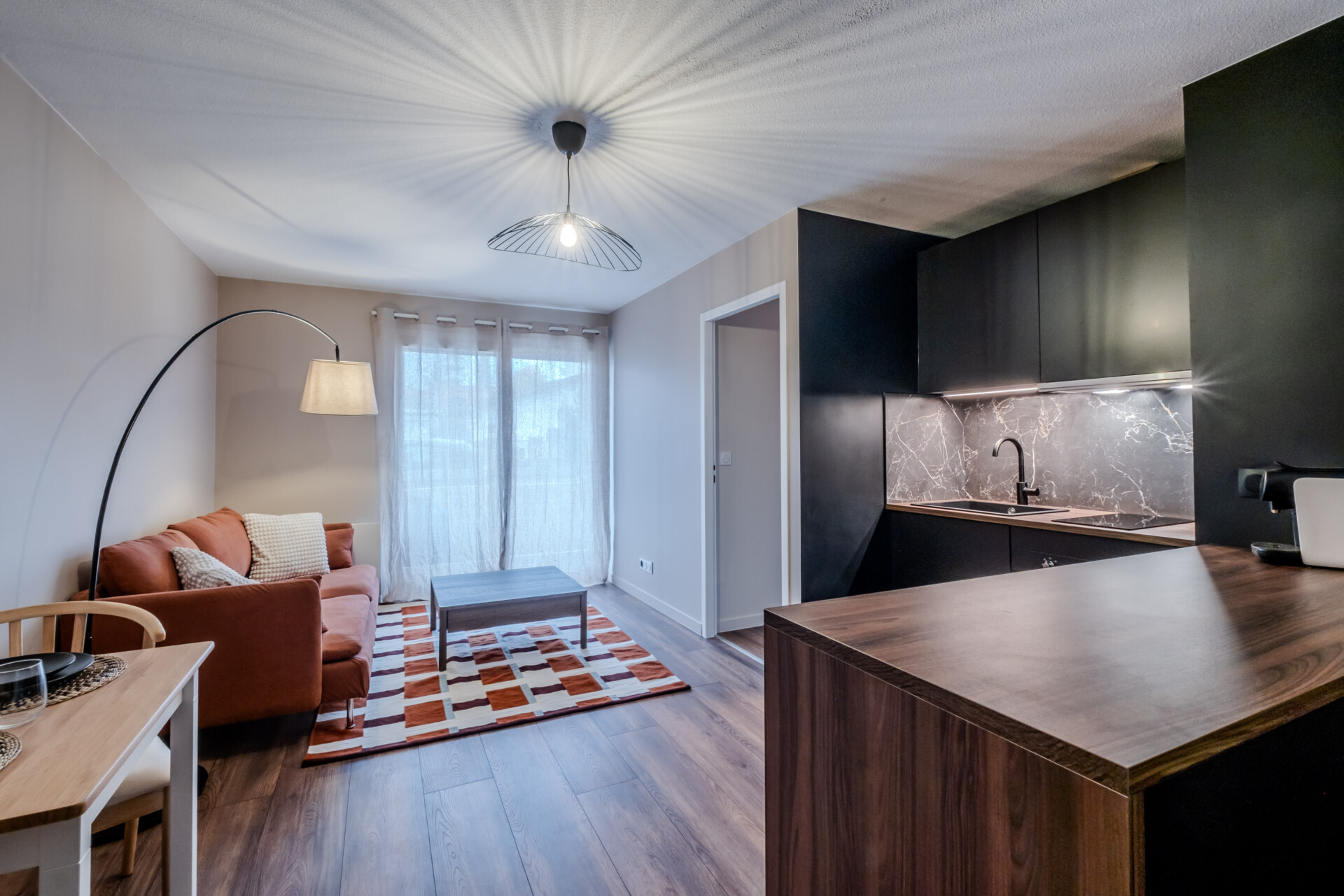 Création d’une chambre séparée, rénovation complète, nouvelle cuisine sur mesure, ameublement et décoration soignée pour cibler une clientèle de location meublée haut de gamme, le tout gérer par notre filiale Hevrest Home.